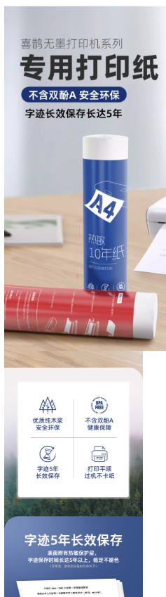 打印猿零墨云喜鹊无墨打印机专用A4热敏打印纸手机远程无线连接移动错题作业办公打印耗材不含双酚A长效保存